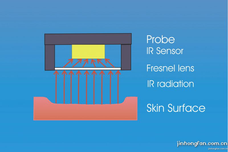 探頭通過傳感器接收皮膚表面發(fā)出的紅外線來測試皮膚表面的溫度,這是一種皮膚 表面溫度的非接觸式測量方法??梢杂眠@種方法來測定皮膚表面在使用化妝品之后的微循環(huán)變化。
