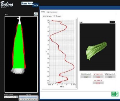 根據(jù)不同角度拍攝的發(fā)束的輪廓線圖像,BOLERO軟件可以建立頭發(fā)的3D模型,測量發(fā)束 的體積及卷發(fā)部分的體積。